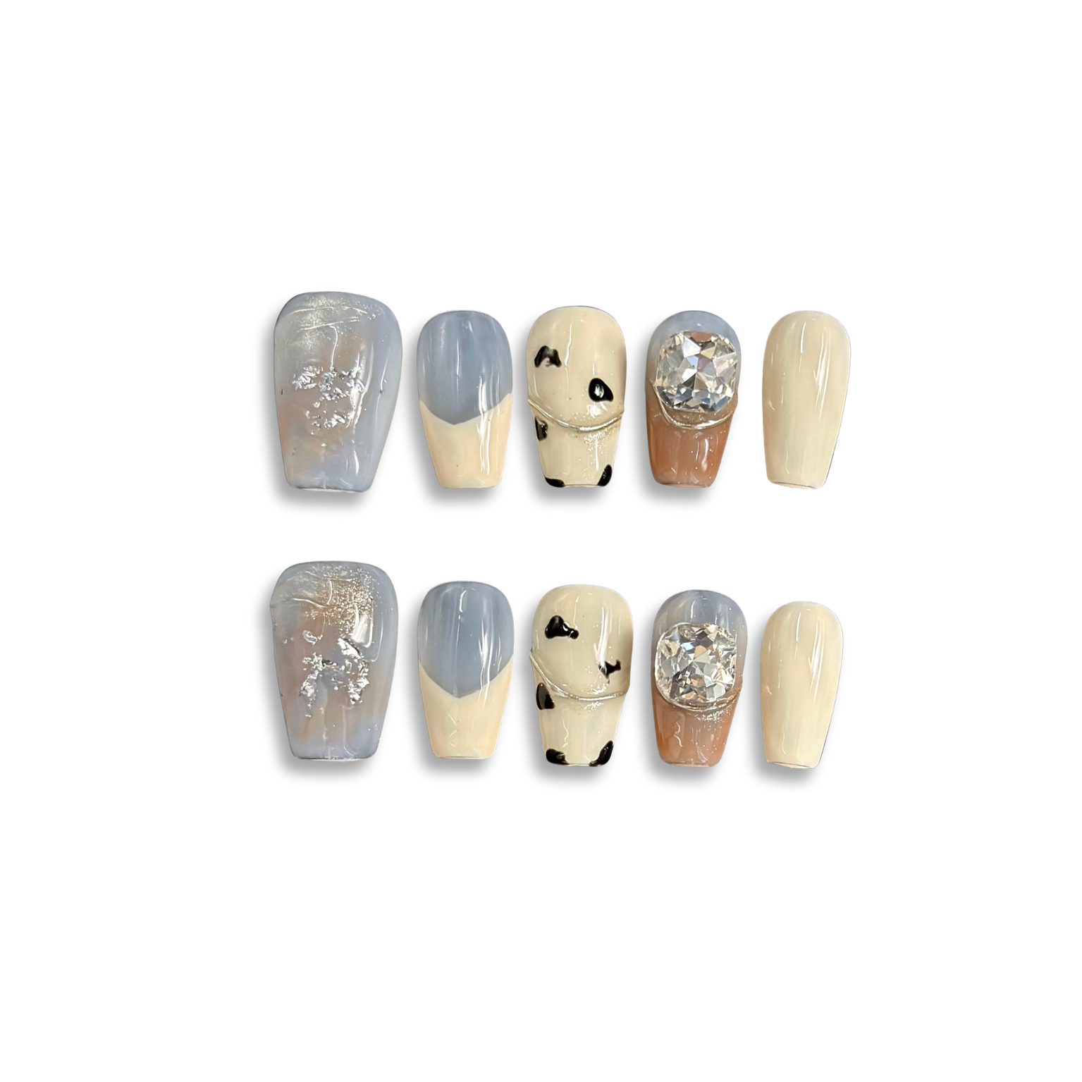 Daydream is playful professionalism—sky blue, cream, and caramel with thoughtful sparkles and a bold charm moment. It whispers creativity while keeping the finish perfectly polished.
