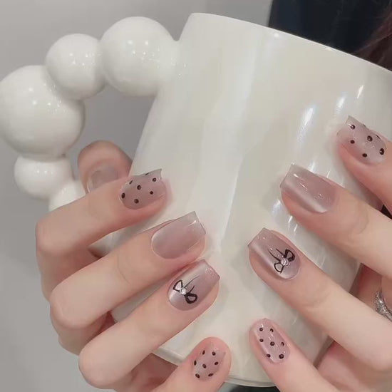 Introducing Twinkle—where minimalist chic meets playful detailing. A high-shine silver glitter base alternates between tiny black polka dots and satin ribbon decals with a single cubic zirconia at the center. The reflective finish keeps it professional, while the designs add a wink of whimsy to your workwear.